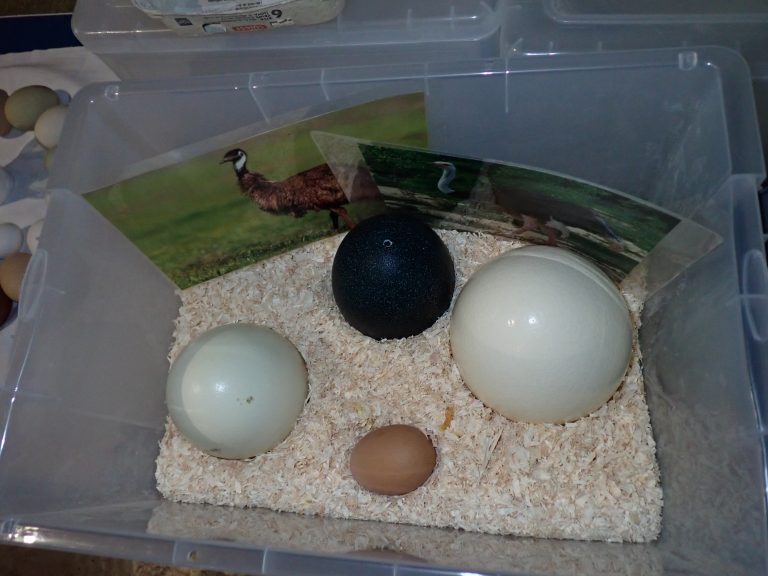 Les clients ont observé différents œufs de poules, dont un œuf noir provenant d’une poule noire de Thaïlande. L’animateur leur a aussi montré des œufs et des plumes de plusieurs oiseaux ainsi qu’un œuf de crocodile. Ils ont été informés que la femelle dominante couve les œufs la journée et que le mâle prend le relais durant la nuit.